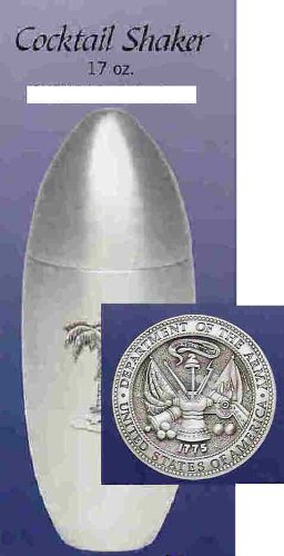 Army Stainless Steel 17 oz Cocktail Shaker with brushed finish and highly detailed 3-D pewter emblem